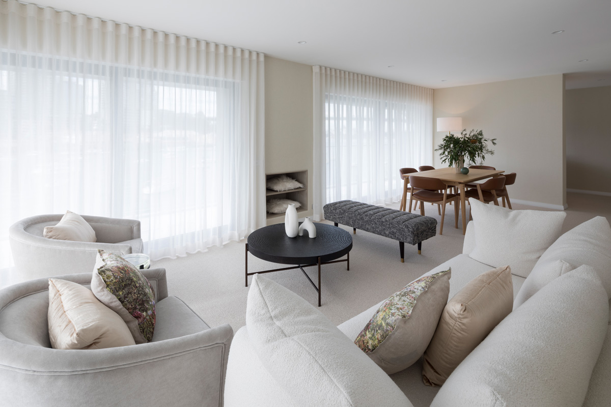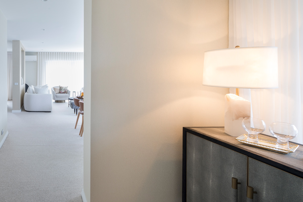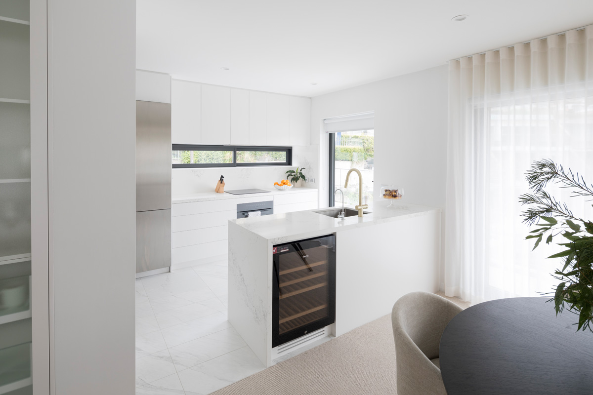Far from stark, the minimalist interior, tonal palette and natural, luxurious textures exude understated luxury, while lifestyle accutrements such as built in wine fridge and double vanity bathroom ensure effortless living, comfort and practicality for the everyday.