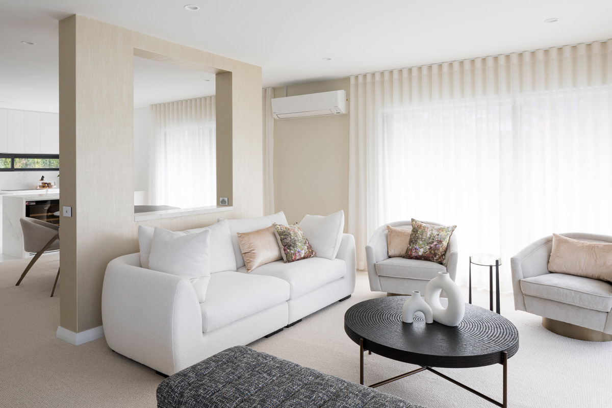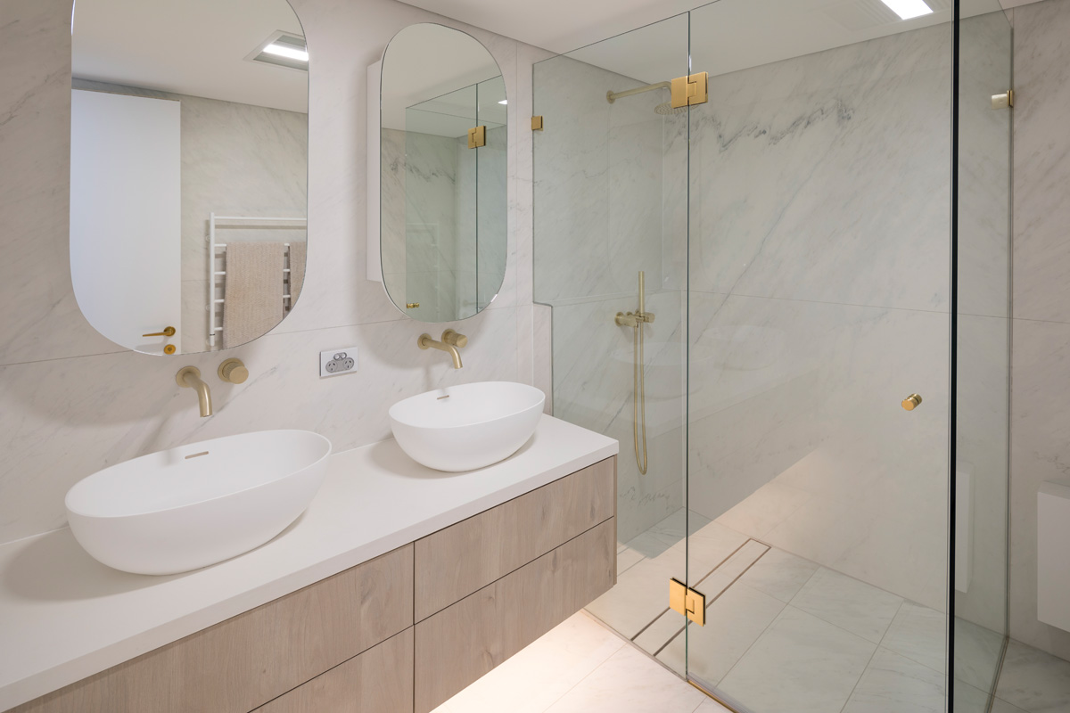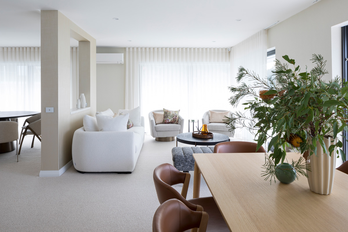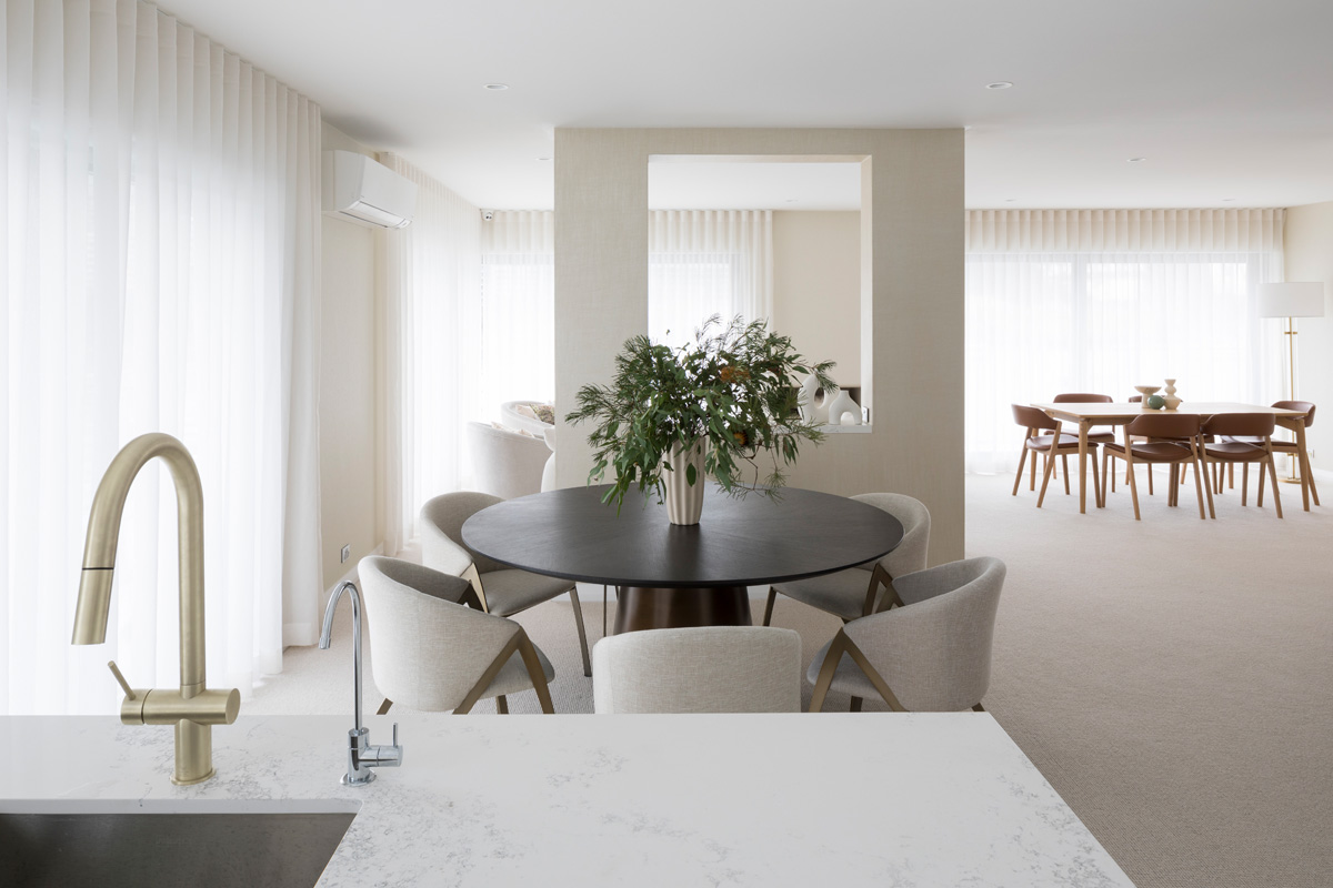 Far from stark, the minimalist interior, tonal palette and natural, luxurious textures exude understated luxury, while lifestyle accutrements such as built in wine fridge and double vanity bathroom ensure effortless living, comfort and practicality for the everyday.