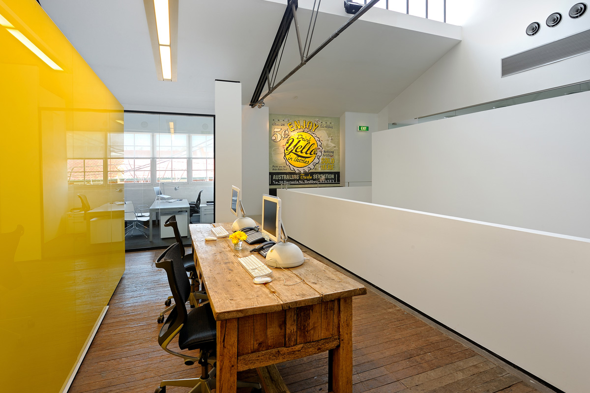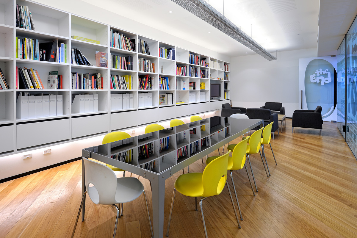 Bespoke finishes transformed this multi-level warehouse style head office. Custom cabinetry, textural finishes, integrated technology, and social common areas give the light and airy offices an open collaborative feel with privacy in breakout rooms and offices where required.